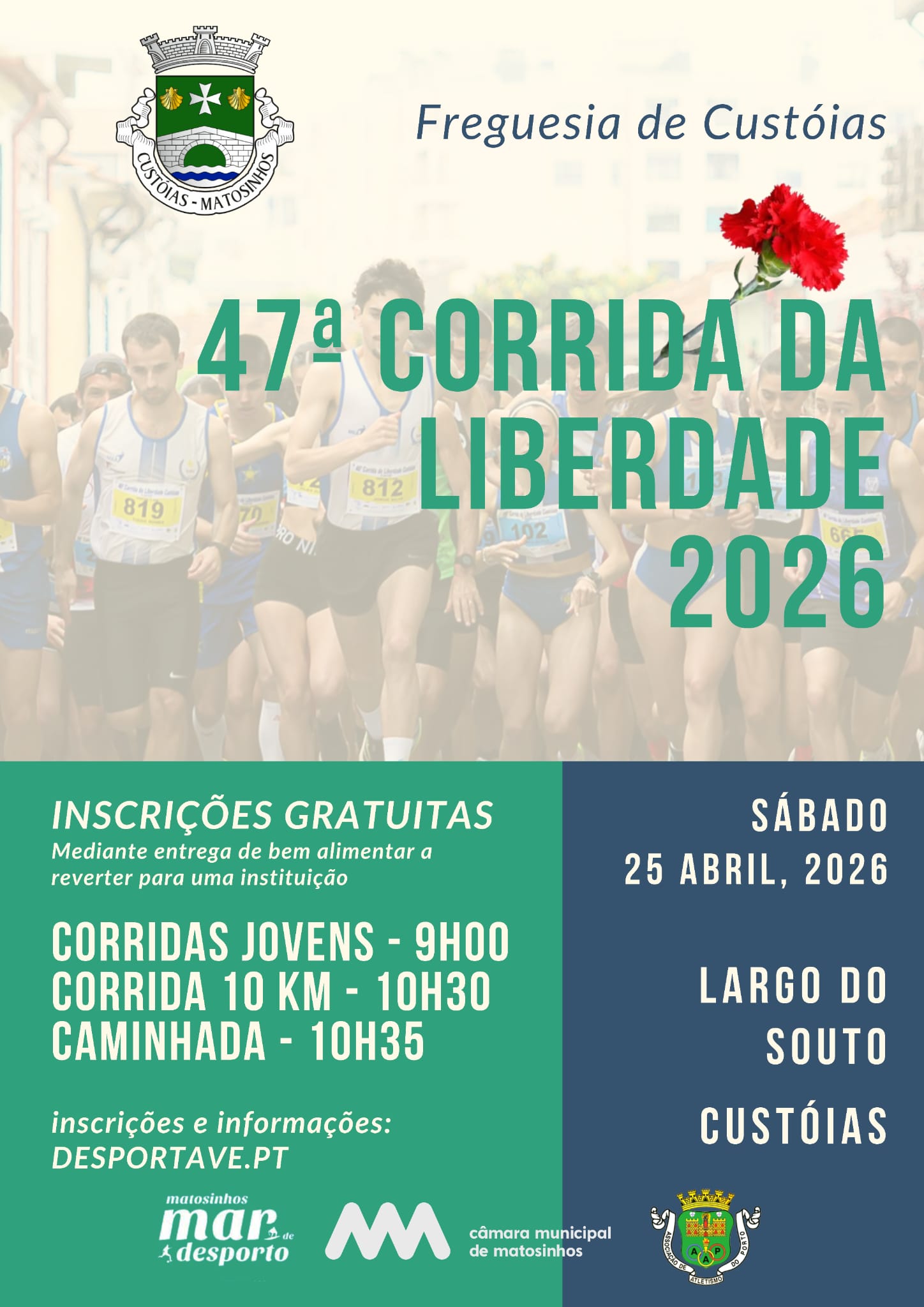 INSCRIÇÕES GRATUITAS NA ENTREGA DE UM BEM ALIMENTAR PARA A ASSOCIAÇÃO A NOSSA MISSÃO, A ASSOCIAÇÃO A FAMÍLIA GIRASSOL, A CONFERÊNCIA VICENTINA DE SÃO TIAGO DE CUSTÓIAS, QUE APOIAM EM GÉNEROS ALIMENTARES FAMÍLIAS CARENCIADAS.